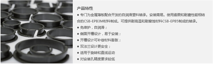 一般而言,用于汽車座椅系統(tǒng)中的鈑金材料厚度公差及沖壓成型的孔公差都較大,然而,在座椅系統(tǒng)中卻需要較小的間隙以盡可能的減少噪音。為了解決這種問題,CSB公司研發(fā)生產(chǎn)了EPB3工程塑料軸承和PCB塑料卡箍軸承。如今,越來越多的汽車座椅設(shè)計工程師采用CSB公司的塑料軸承產(chǎn)品。