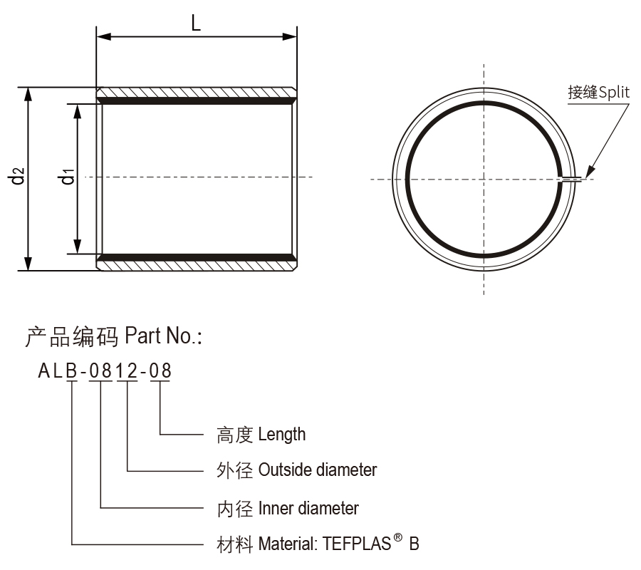 標(biāo)準(zhǔn)軸承基體材料為輕質(zhì)高強(qiáng)度鋁合金,當(dāng)軸承應(yīng)用于有耐腐蝕性要求比較高的場(chǎng)合建議采用不銹鋼基體與TEFPLAS? G作為耐磨層材料;