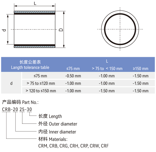 ▊DURARUB?纖維纏繞軸承適用于高載荷工況,基于使用場(chǎng)合滿足大部分可能接觸的化學(xué)介質(zhì);纏繞軸承基于干摩擦高負(fù)荷運(yùn)動(dòng)而開(kāi)發(fā),但即使在油潤(rùn)滑、脂潤(rùn)滑或有水環(huán)境都不會(huì)對(duì)軸承造成損壞;但CSB?建議軸承在完全浸泡水下或者潤(rùn)滑油中使用請(qǐng)考慮CRW纏繞軸承與CRF纏繞軸承。