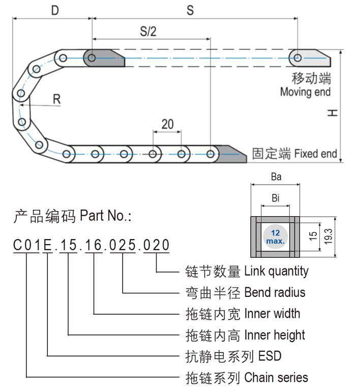 C01E.15抗靜電微型塑料拖鏈體積極小,基于一片式設(shè)計(jì)重量輕特別適用于高速運(yùn)動(dòng)。C01E.15抗靜電微型塑料拖鏈適用于較小安裝空間,多種尺寸規(guī)格可選。