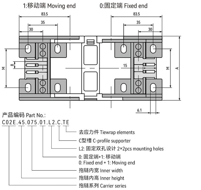 *A1|A2|A3|A4訂購(gòu)預(yù)裝配拖鏈請(qǐng)注明安裝方式