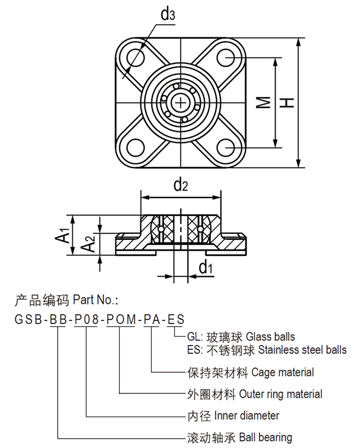 ● 軸承材料:環(huán)-POM,保持架-PA,球-不銹鋼-ES或玻璃-GL;