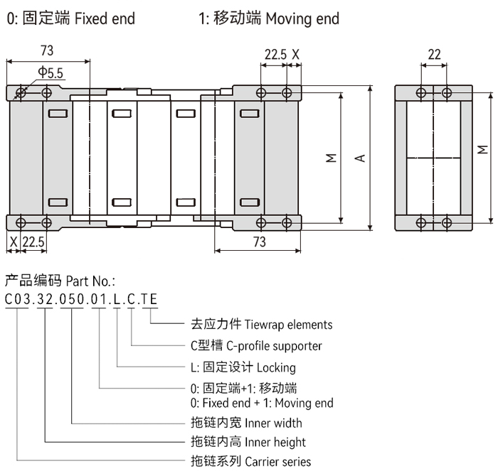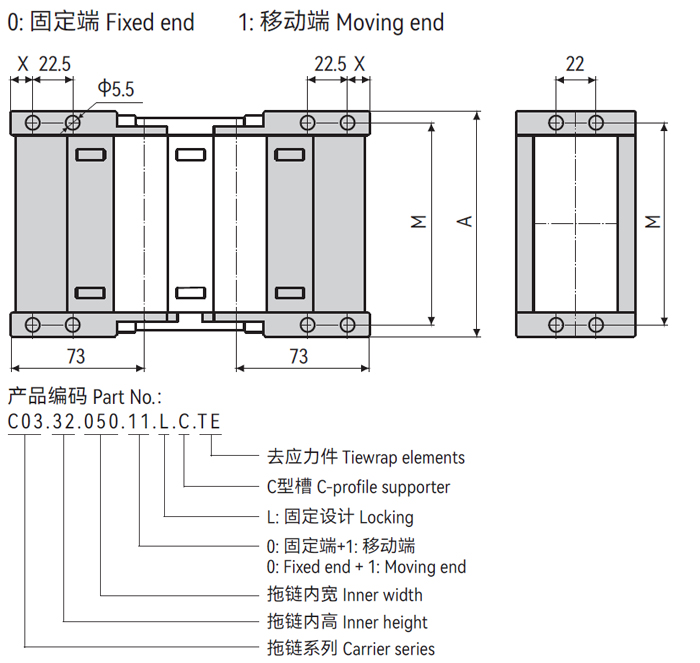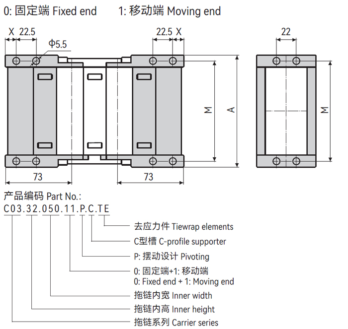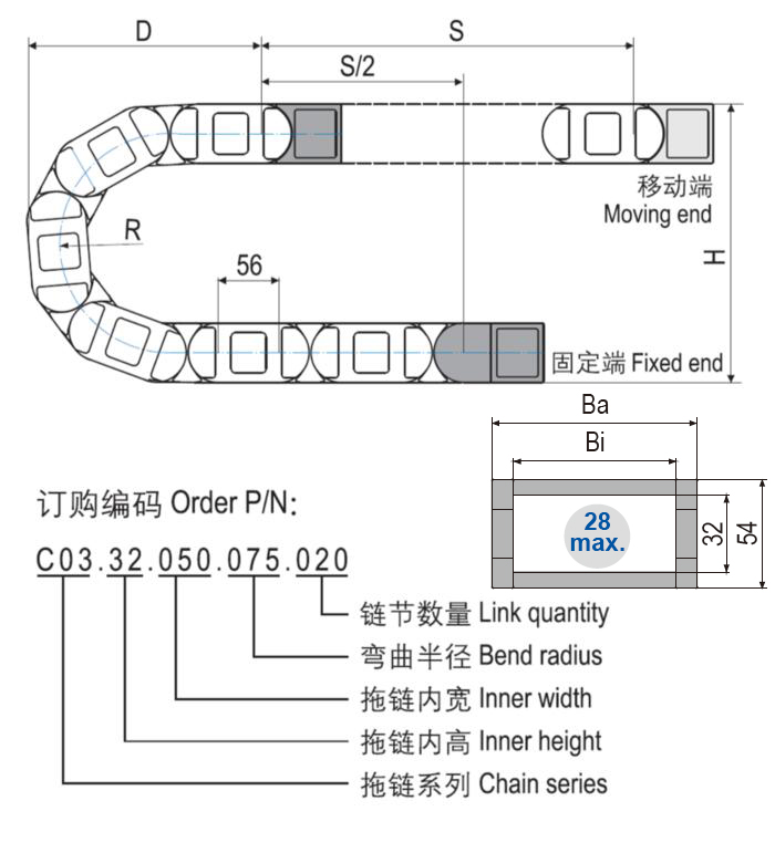 ● 用于C03塑料電纜拖鏈長(zhǎng)行程保護(hù)