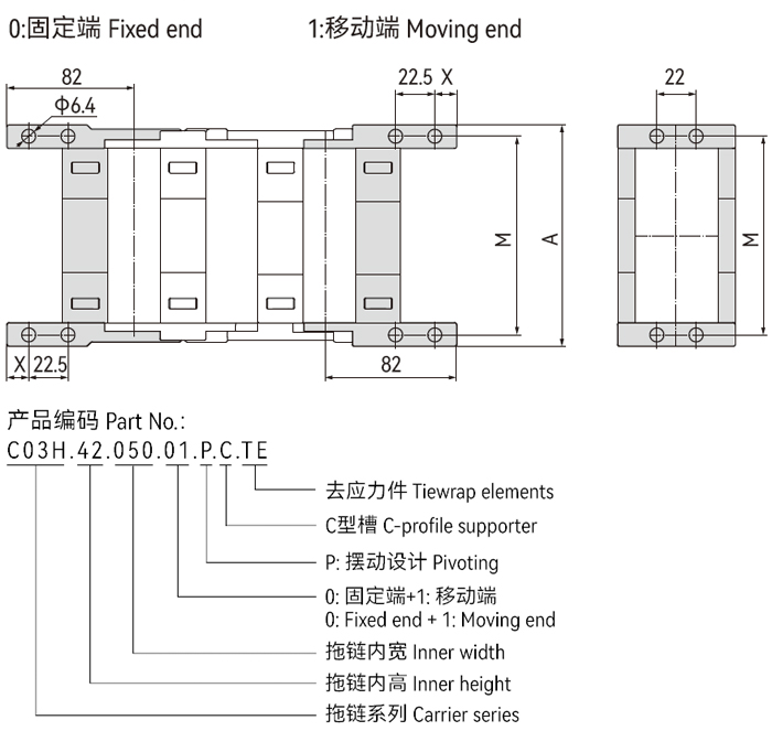 C03H高強度電纜拖鏈?zhǔn)腔贑03電纜拖鏈的改進版本。高強度材料結(jié)合穩(wěn)固的結(jié)構(gòu)設(shè)計使得C03H具有更高的承載能力,特殊橫桿設(shè)計賦予了拖鏈內(nèi)寬尺寸高自由度選擇。