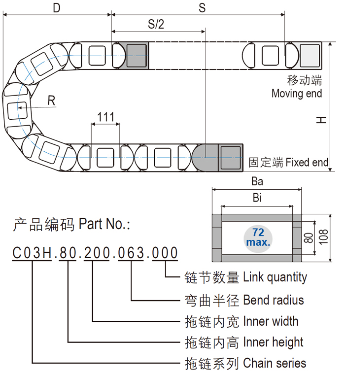 ● 用于C03塑料電纜拖鏈長(zhǎng)行程保護(hù)