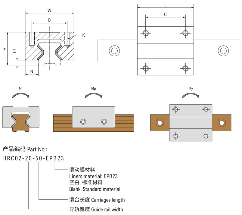 產(chǎn)品編碼 | 最大靜載載荷 Coy+=Coy-=Coz+=Coz- | 最大靜力矩 [N·M] | 重量 | ||