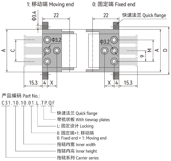 *A1|A2|A3|A4訂購預(yù)裝配拖鏈請注明安裝方式