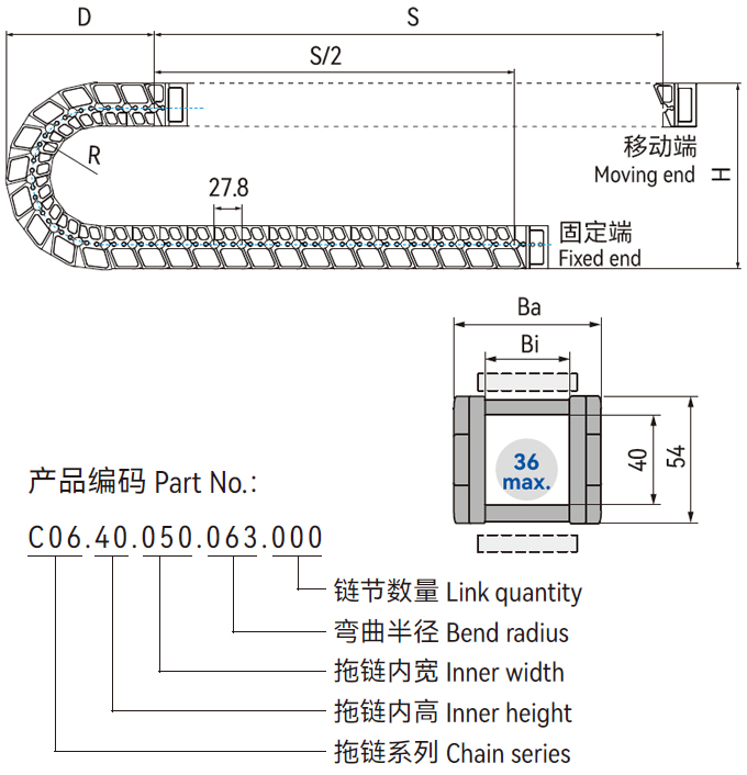 *A1訂購預(yù)裝配拖鏈請(qǐng)注明安裝方式