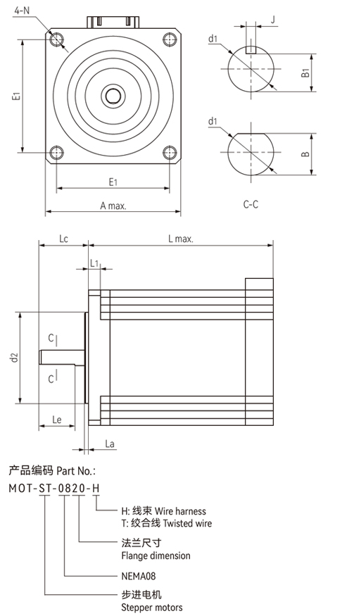 ● 電機是性價比高的步進電機,這款電機的連接線直 接從外殼接出,適合安裝有額外外殼或用于清潔環(huán)境中 的機器設備