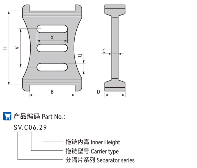 ● 高強度分隔片可穩(wěn)固裝備在塑料拖鏈中